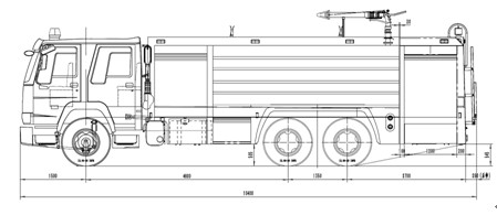 17噸泡沫消防車(chē)采用中國(guó)重汽集團(tuán)濟(jì)南卡車(chē)股份有限公司ZZ5357TXFV464MF5型二類(lèi)汽車(chē)底盤(pán),原裝雙排駕駛室,乘員2+4人,該車(chē)駕乘舒適輕便。上裝采用外露式水罐,整車(chē)載液量為水14000kg;泡沫3000kg。器材箱采用高質(zhì)量鋁合金卷簾門(mén)。底盤(pán)取力,發(fā)動(dòng)機(jī)型號(hào)為MC11.44-60 ,最大功率327kW,通過(guò)萬(wàn)向聯(lián)軸器驅(qū)動(dòng)安裝在汽車(chē)尾部泵房里的上海茸申CB10/100型低壓消防泵,可在1.0MPa下穩(wěn)定輸出100L/s的流量;車(chē)頂安裝成都威斯特消防器材有限責(zé)任公司生產(chǎn)的PL80型消防炮(泡沫消防車(chē)),流量80L/s,對(duì)應(yīng)壓力0.8MPa,最大承壓1.3MPa,純水射程75m,泡沫射程70m,可360°旋轉(zhuǎn)。同時(shí)該車(chē)具有比功率大、綜合性能強(qiáng)、操控集中簡(jiǎn)便等特點(diǎn)。