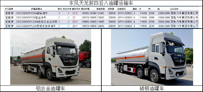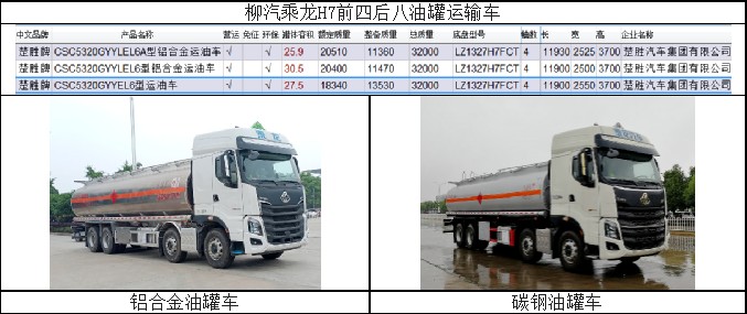 四.楚勝碳鋼與鋁合金罐體容積與整車尺寸參照表: